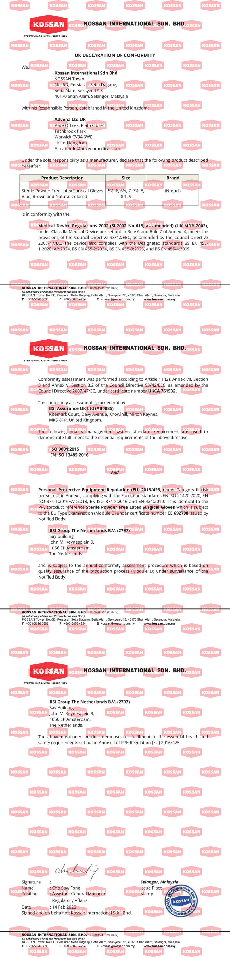 iNtouch® Powder Free surgical gloves are an alternative choice over powdered surgical gloves as it does not contain airborne powder particles that attract natural rubber proteins which potentially cause Type I hypersensitivity in some users and patients.